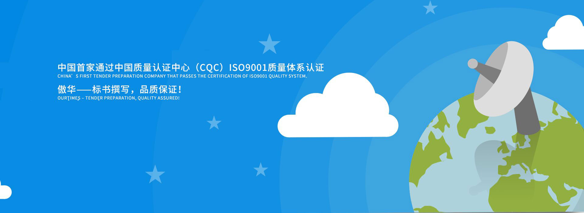 傲华创思标书代写公司中国首家通过中国质量认证中心(CQC)ISO9001质量体系认证。傲华致力于为各行业及部门提供国内及国际招标项目评估、投标指导、投标代理服务,为各大型企事业单位及其他高端个人或企业群体进行招标文件分析、投标指导、制作标书、代理编写、应邀参与投标活动。